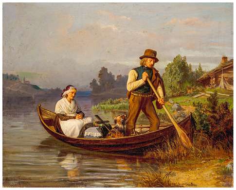 Путь на кладбище. В лодке можно увидеть цветочный венок. Александра Фростерус-Солтин, 1861 г.