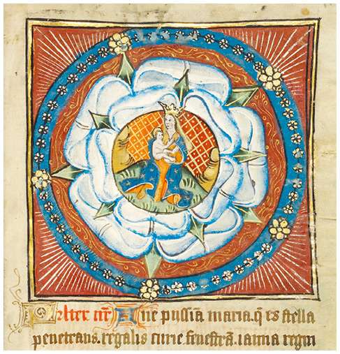 Дева Мария с розой. Миниатюра из манускрипта XV в.
