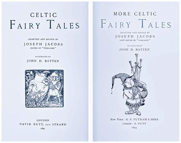 Оригинальные титульные листы «Кельтских сказаний» под редакцией Джозефа Джекобса, 1892 г. и 1895 г.