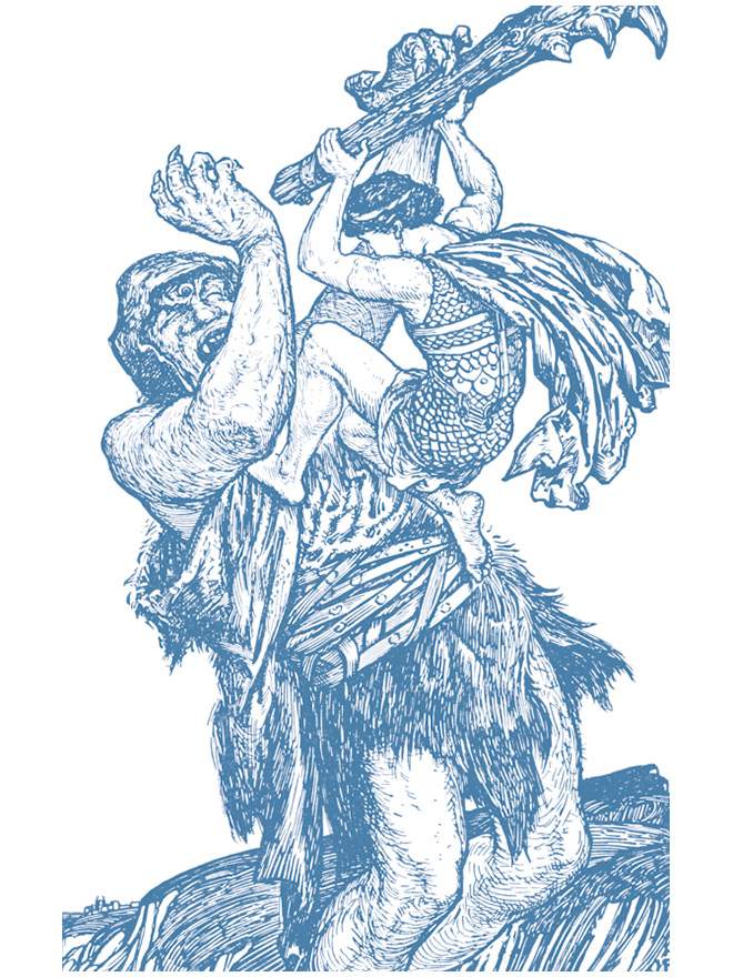 Диармайд выхватывает дубинку великана. Иллюстрация из «Книги романтики» Эндрю Лэнга, 1902 г.