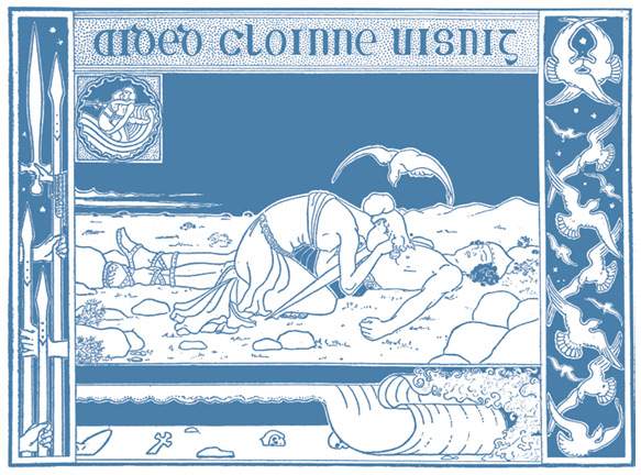 «Благословен будешь ты за это, и пусть добро придет ко мне, Дуанан. Я не считаю, что зря потратил все, что вложил в твое обучение и наставление. Теперь пусть тот лед растает, а море высохнет. И скажи, смогу ли я лицезреть Дейрдре», сказал Конхобар. Друид Дуанан Гах сделал, как было велено, и король увидел, что три сына Уснеха лежат рядом бездыханные, мертвые, бок о бок на лугу, на зеленой равнине, а Дейрдре рыдает, склонившись над ними.