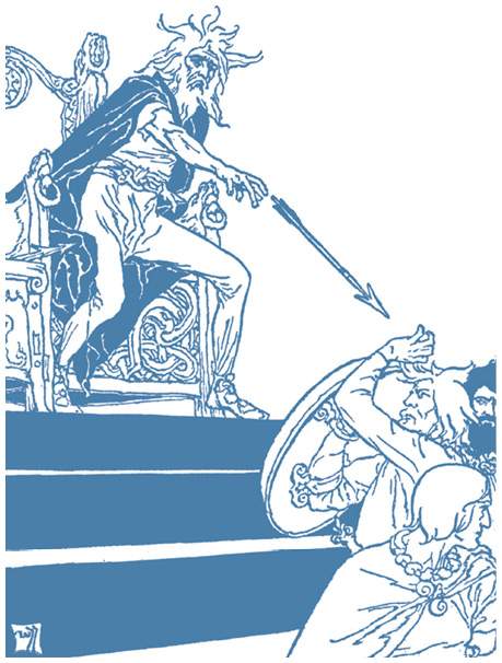 «О проклятый зять, воистину теперь я буду вечно хромать из-за его дерзости. Это отравленное железо причиняет мне дикую боль, как укус овода. Будь проклят кузнец, который выковал его, и та наковальня, на которой этот наконечник был сделан».