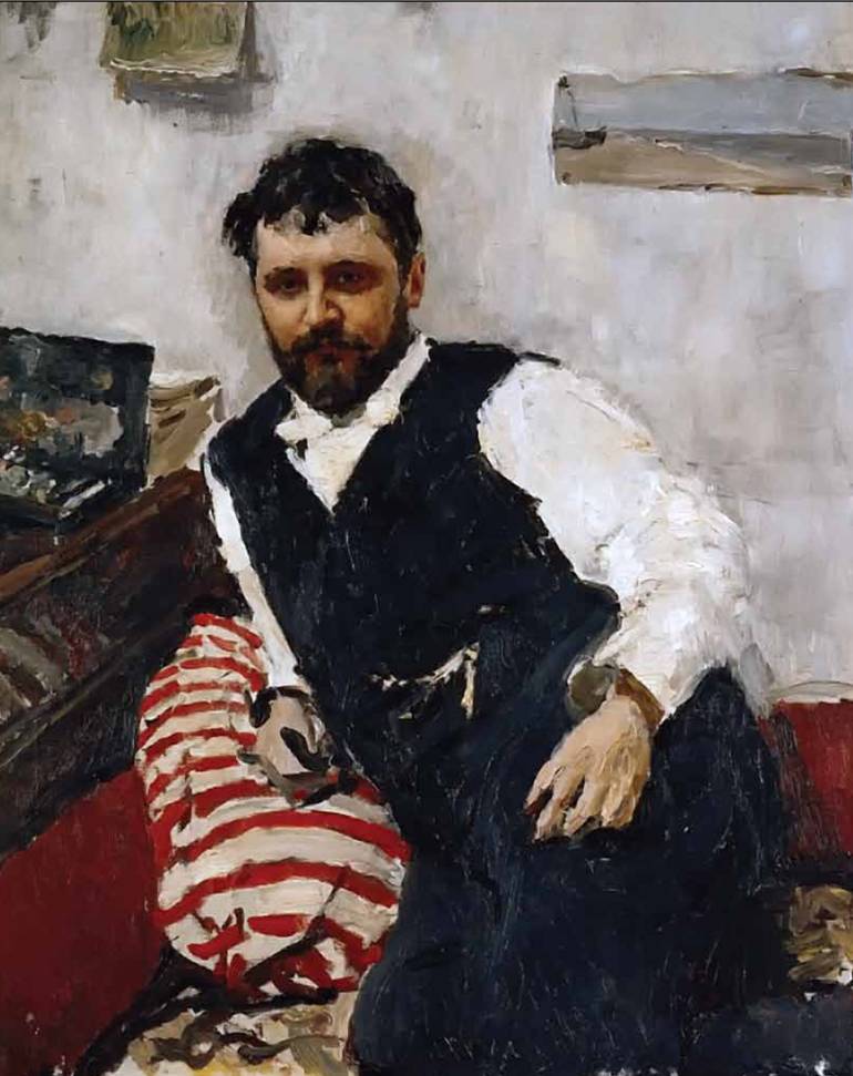 Первыми моделями Серова становились близкие и знакомые ему люди: артисты, художники, писатели. Он писал портреты своих друзей: Коровина, Левитана, Репина, Лескова и Римского-Корсакова. Для каждой новой работы живописец выбирал особый стиль, подчеркивающий индивидуальные черты героев. Например, «Портрет Константина Коровина» (1891, Государственная Третьяковская галерея, Москва), своего друга, мастер создал в совершенно коровинской манере крупным свободным мазком, используя присущие Коровину цвета и обогащая ими его личностные характеристики. Свободная поза, домашняя одежда и весь окружающий антураж верно передают облик и темперамент художника.