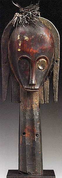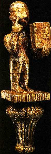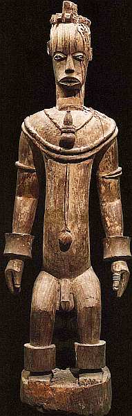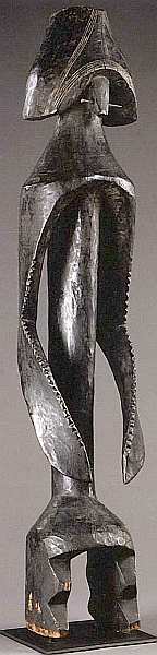 племена живут в труднодоступных горах. Сейчас мумуйе по вероисповеданию мусульмане, однако они до сих пор хранят память о своих верованиях и ритуалах: поклоняются духам, богу дождя, совершают магические обряды. Формы фигур и статуй также отражают древние традиции африканского ритуального искусства, которые неизменно поражают европейцев своей оригинальностью и сохранением подлинного духа первобытной веры в силы природы и незыблемый порядок божественного установления. Казалось бы, данная статуя очень проста, даже примитивна это человеческая фигура с руками, ногами и головой, в оригинальной шляпе. Однако ее исполнение, особенно крылеобразных рук, трудоемко и очень фантазийно.