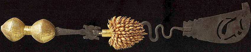 Корону украшают листья папоротника, несущие, как принято, особый смысл. На языке акан слово «папоротник» означает также «нападение». Таким образом, изделие будто говорит: «Вождь не боится нападений». Глубокая образность символа объяснима: считается, что папоротники могут расти в самых сложных условиях, они очень выносливы.