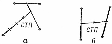 а последовательным делением отрезков; б при симметричном расположении пробоин