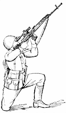 В зависимости от высоты упора или укрытия снайпер принимает положение для стрельбы: лежа, с колена или стоя.