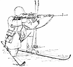 Рис. 65. Положение при стрельбе с лыж: