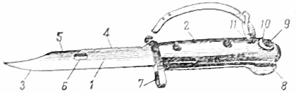 Штык-нож состоит из лезвия и рукоятки.