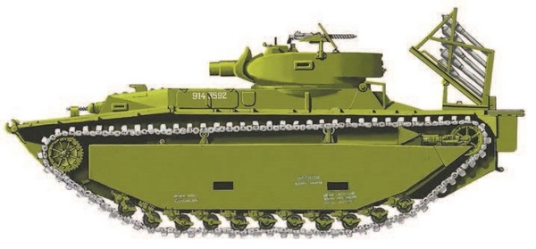 Уже в июле 1945 г. в австралийской бронетанковой школе в Пуккапунуале провели испытания танка LVT(A)-4 со смонтированными в кормовой части двумя ПУ для 114,3-мм реактивных снарядов M8. Каждая ПУ содержала до 12 снарядов, выпускавшихся залпом или последовательно. В боевых условиях эти танковые пусковые установки испытать не успели война окончилась.