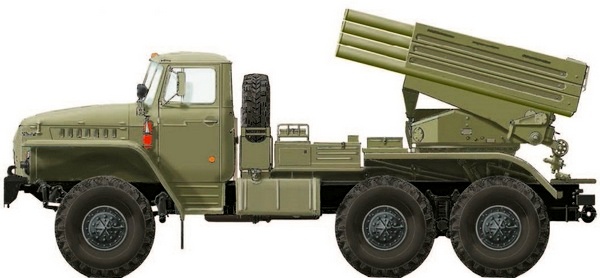 Но после в качестве шасси были выбраны автомобили «Урал-375Д» или «Урал-4320». Артиллерийская часть состоит из 40 направляющих трубчатого типа, образующих так называемый пакет: четыре ряда по 10 труб в каждом. Труба предназначена для направления полёта снаряда, а также для его транспортировки. Калибр трубы 122,4 мм, длина 3 м.