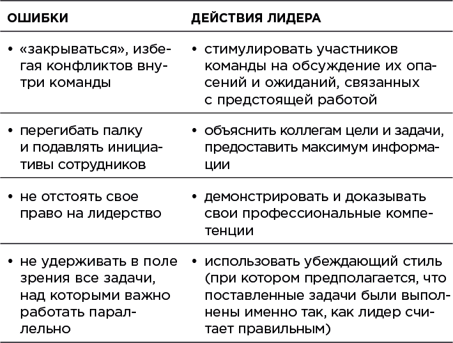 На стадии формирования команды, когда главный риск недоверие, лидеру стоит обратить внимание на допускаемые им ошибки и предпринять соответствующие действия.