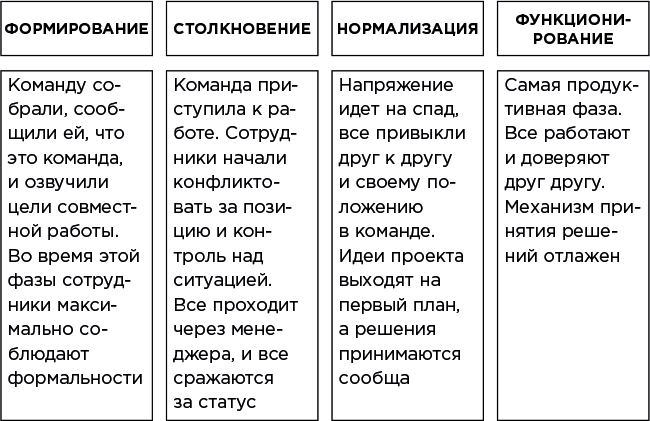 Вспомним уже знакомый материал и представим стадии развития команды схематично, чтобы было проще ориентироваться в возможных ошибках и действиях, направленных на их исправление.