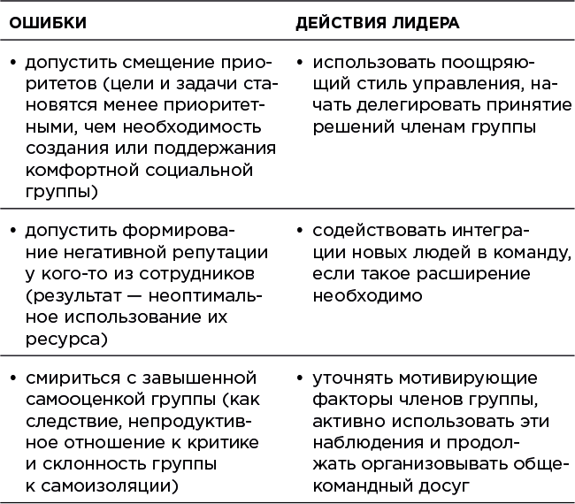 Отсутствие требовательности, расслабленность команды и даже вседозволенность главные риски стадии функционирования. И здесь лидеру особенно важно не пускать процесс на самотек.