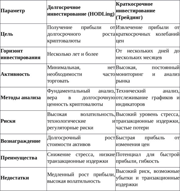 Выбор между долгосрочным и краткосрочным инвестированием зависит от ваших целей, уровня терпимости к риску и вовлеченности в процесс. Долгосрочное инвестирование подходит тем, кто верит в будущее криптовалюты и готов держать активы на протяжении долгого времени, в то время как краткосрочное инвестирование идеально для тех, кто готов активно участвовать в торговле и использовать рыночные колебания для быстрой прибыли. Важно понимать, что оба подхода требуют внимательности и анализа, и каждый из них имеет свои риски и преимущества.