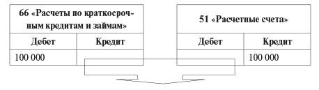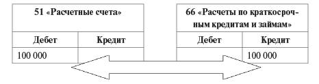 Д-т 66 «Расчеты по краткосрочным кредитам и займам» К-т 51 «Расчетные счета» 100 000 руб.