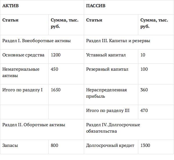 Рис. 10. Пример бухгалтерского баланса
