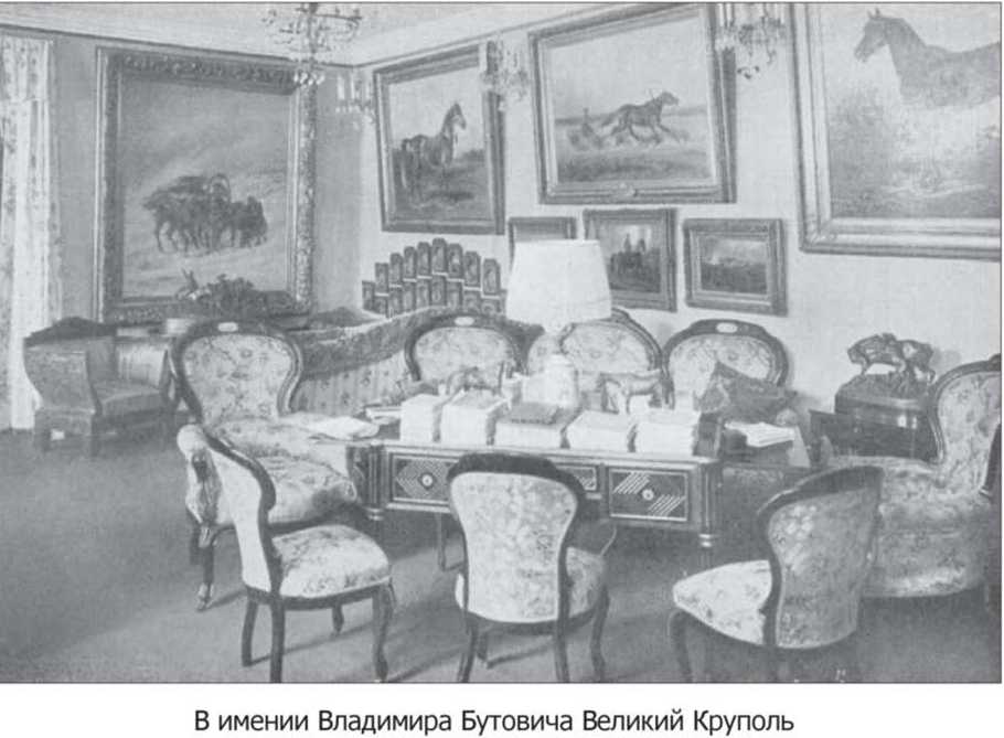 Ей делает предложение Владимир Бутович. Ему 29 лет. Он принадлежал к украинской аристократии. Его предок, переяславский протопоп Григорий Бутович, 8 января 1654 года подписал постановление Переяславской рады о воссоединении Украины и России. Его прадеды и деды генеральные есаулы, бунчуковые товарищи, губернаторы. Владимир Николаевич наследовал огромную коллекцию семейных реликвий: фамильные портреты (в том числе единственный сохранившийся живописный портрет гетмана Ивана Мазепы), документы, оружие, утварь, накопленные за несколько столетий.