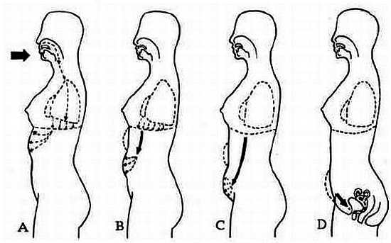 Рис. 1.10. Трижды проглотите слюну, направляя ее в область пупка