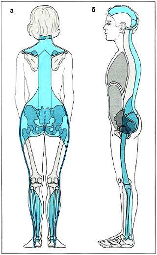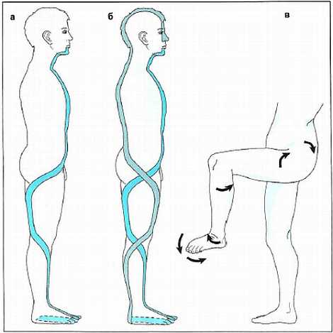 Рис. 2.8а,б. Миофасциальные цепи по Майерсу: