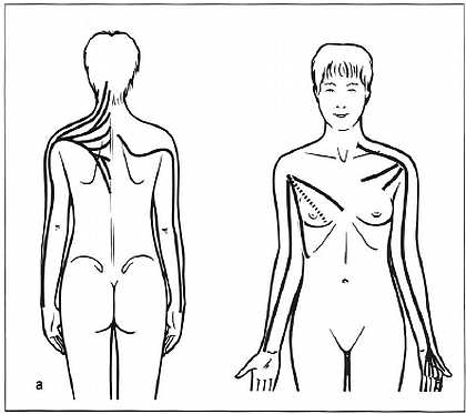 Есть четыре линии руки (рис. 2.8), по одной с каждой стороны обеих рук, идущие от грудной клетки или затылка до пальцев.