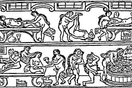 В начале XVIII в. камер-юнкер Фридрих фон Берхольц, находившийся при дворе Петра I, писал в личном дневнике: «Вначале спокойно лежишь на полке, устланной соломой, сверху покрытой чистой простынью. Затем вас начинают парить березовыми вениками. Это необыкновенно приятно, потому что открывает поры и усиливает испарину. После этого начинают энергично скрести пальцами по всему телу (Берхольц, по-видимому, имел в виду мануальный массаж), чтобы от него нечистоту убрать, что также очень приятно. Затем берут мыло и натирают им все тело так у что нигде не остается ни малейшего следа грязи».