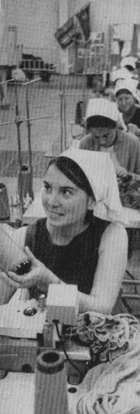 Всегда быть впереди! - девиз комсомолки ударницы коммунистического труда П. А. Чернак, вязальщицы чулочного комбината