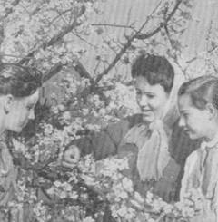 Юные садоводы городской станции юннатов у цветущего абрикоса