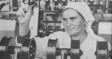 По коммунистически трудится в спиральном цехе Брестского электролампового завода навивальщица А. Н. Рабчук