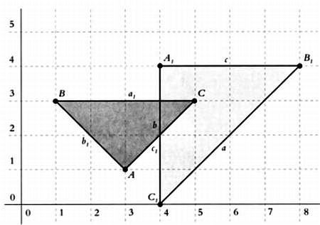 Рассмотрим треугольники с вершинами А = (3,1), В = (1, 3), С = (5, 3) и А1 = (4, 4), В1 = (8, 4), С1 = (4, 0), как изображено на рисунке: