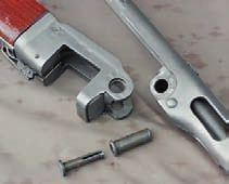 вывинтить хвостовой винт соединяющий ложу с затворной коробкой,