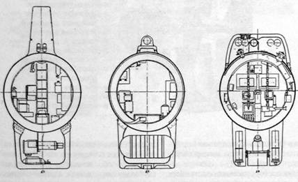 Прочный корпус был разделен герметичной переборкой на два отсека носовой, где размешался экипаж, и кормовой агрегатный. В носовом отсеке были организованы три зоны: на левом борту пост командира с пультом управления ГА и навигационными системами, на правом борту пост его помощника по электромеханической части (ЭМЧ) с пультом управления всеми судовыми системами и связью, в носовой оконечности пост помощника командира по научно-исследовательским работам (НИР), с которого производилось управление всем научно-исследовательским и поисковым оборудованием, а также манипуляторным устройством.