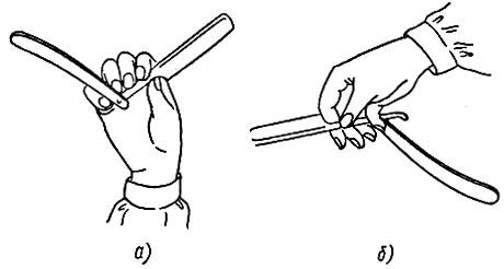 Рис. 11. Приемы держания бритвы: а - первый прием, б - второй прием