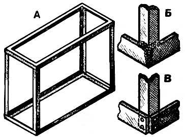 Рис. 1.Каркас аквариуме [А], соединение уголков сваркой [Б] и заклепками [В]