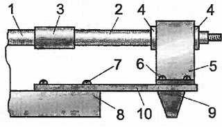 1 вал электропривода; 2 дополнительный вал; 3 соединительная трубка; 4 крышка подшипников; 5 опора вала; 6 крепеж опоры к пластине; 7 крепеж пластины к станине; 8 станина; 9 ножка (резина); 10 пластина