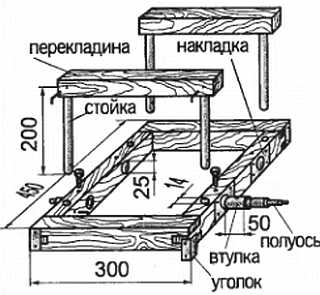 Основу всей конструкции составляет прямоугольная рама размером 30x45 см (рис. 2), собираемая в шип из деревянных брусков сечением 40x50 мм и усиленная металлическими уголками в местах стыков.