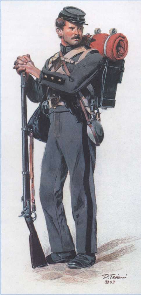Человеком, исключительно преданным делу Конфедерации, был бригадный генерал Бернард Э. Би. Уроженец Южной Каролины и выпускник Вест-Пойнта 1845 года, Б. Би был замечательной личностью. Он героически сражался во время Мексиканской войны (война с Мексикой 18451848 гг., закончившаяся присоединением Техаса к США. Прим. ред.), и когда он поступил на службу Конфедерации, на нем все еще был синий мундир армии США. Подчиненные генерала, не обладая его военным опытом, тем не менее разделяли его решимость. За три дня до первого сражения один из солдат генерала Би, рядовой Джеймс Дж. Хадсон из 4-го Алабамского полка, писал: «Парни все в приподнятом настроении, все возбуждены, все под впечатлением того, что предстоит атаковать северных варваров». Алабамский полк, находящийся пока в безмятежном неведении относительно суровой военной реальности, представлял собой объединение разномастных волонтерских рот, форма которых была столь же различна: солдаты носили как серые, так и синие (т. е. старой армии США. Прим. ред.) мундиры. На их вооружении находились ружья 69-го калибра образца 1842 года и ружья «Миссисипи» 54-го калибра. Большая часть личного снаряжения была еще из запасов территориальной милиции довоенного времени. В своем стремлении победить ненавистных янки волонтеры были весьма безразличны к сложностям маневра, полагаясь больше на патриотизм, чем на эффективность тактики.