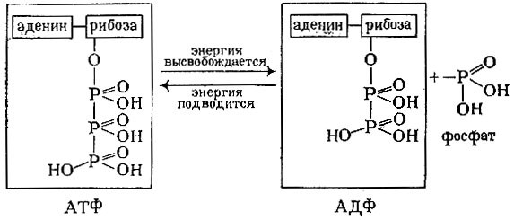 АТФ служит в клетках универсальной энергетической валютой: множество биологических катализаторов ферментов устроено таким образом, что они умеют вести химические реакции, идущие с затратой энергии, за счет гидролитического отщепления одного или двух остатков фосфорной кислоты от молекулы АТФ (этот процесс сопровождается выделением энергии), или, наоборот, умеют использовать энергию, высвобождаемую в реакциях с выделением энергии, для образования АТФ. Ситуация до некоторой степени напоминает электрический аккумулятор: расщепляя АТФ, клетка использует высвобождаемую при этом энергию на биосинтез различных соединений аккумулятор разряжается, а окисляя углеводы, клетка синтезирует АТФ аккумулятор заряжается: