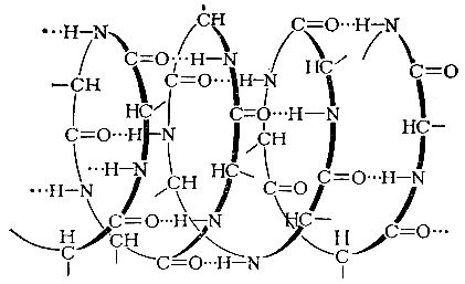 Между кислородом карбонильной группы и водородом аминогруппы возникает особая связь, называемая водородной. Эта связь гораздо слабее обычной химической связи, и одну водородную связь легко порвать. Но вдоль белковой цепи таких водородных связей десятки и сотни. Именно поэтому разрушить спиральную структуру белка не так-то легко.