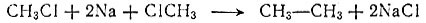 Но не будем забывать о нашей задаче: построить различные сложные молекулы из простых кирпичиков-молекул метана. Для этого нам понадобится метилхлорид. Если подействовать на это соединение металлическим натрием, то из каждых двух молекул СН3Сl образуется одна молекула этана, в которой имеется связь углерод углерод: