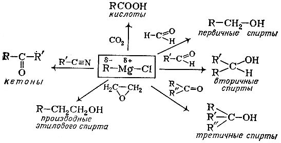 Какие огромные возможности для органического синтеза дают реактивы Гриньяра, видно хотя бы из приведенной здесь сводной схемы.