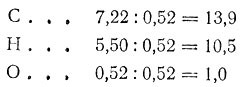 "Анализ дал следующие результаты: из 0,497 г тела, высушенного при 140 °С, получено: 1,456 г С02 и 0,2085 г Н20, т. е. 79,59% С и 4,66% Н. Из 0,361 г тела получено 0,122 AgCl или 8,26% С1.