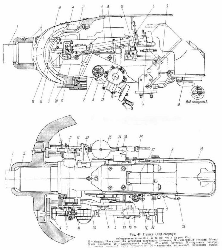 Схема установки 86-мм танковой пушки ЗИС-С-53 в башне танка Т-44