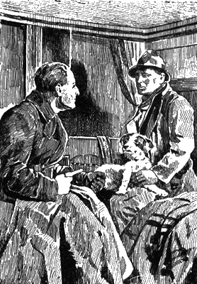 «Онъ все еще перебиралъ руками свой револьверъ, но уже не цѣлился въ меня. Питеръ тоже забрался въ автомобиль и помѣстился между моими колѣнями.