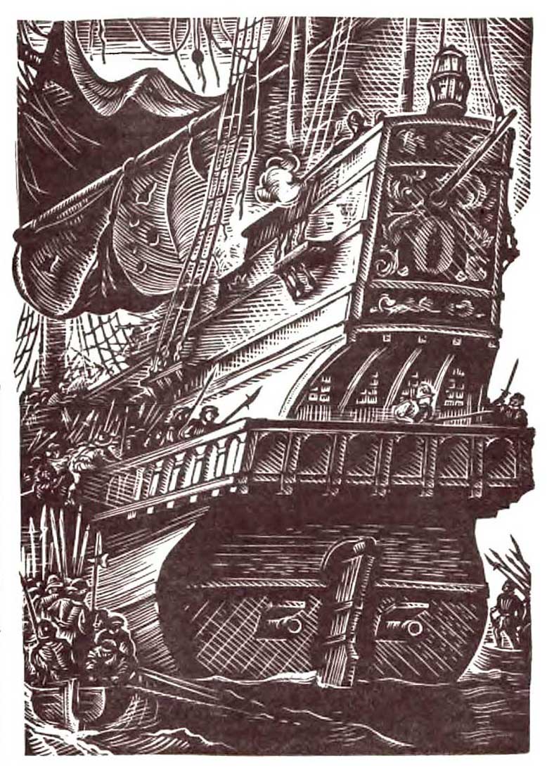 Отставить огонь! крикнул он в ухо старшему помощнику. Привести паруса к ветру! Вперед! Сейчас мы его абордируем!