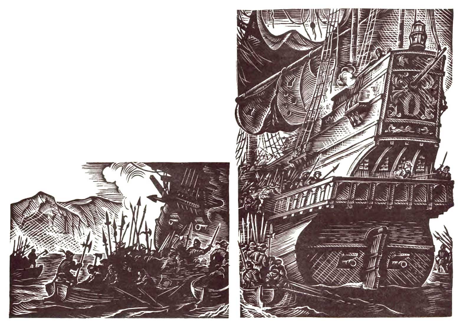 Люди Кэвендиша ворвались на палубу искалеченного судна.