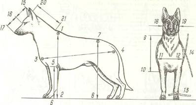 В необходимых случаях для более точного определения и сравнения других показателей развития и сложения собаки делают дополнительные промеры: