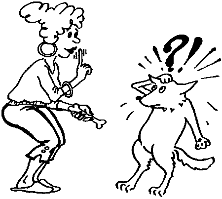 В одной из групп, где я проводил занятия по курсу общего послушания, дрессировщица очень долго не могла выработать у своего питомца запаздывательное торможение (выдержку на команду «СИДЕТЬ!»). Когда же собака наконец-то выполнила требуемое действие, дрессировщица подала команду-поощрение «ХОРОШО!» в укоризненной интонации, подкрепляя при этом свои действия угрожающим жестом указательного пальца. Собака тут же нарушила команду и подошла к хозяйке с виноватым и непонимающим видом.