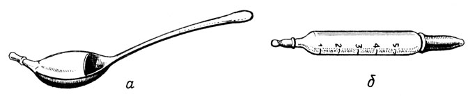 Рис. 43. Приспособления для выкармливания осиротевших щенков: а - ложечка с соской; б - пипетка на 5 мл для очень мелких щенков