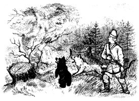 Пойдём, братья, куда глаза глядят, говорит старший брат. И отправились братья-охотники напрямик через пущу.